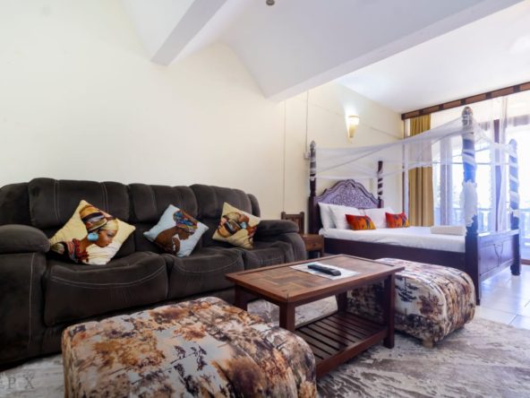 A delightful beachfront studio unit in Diani, just a short 5-minute walk to the beach.