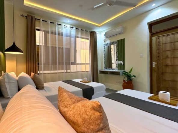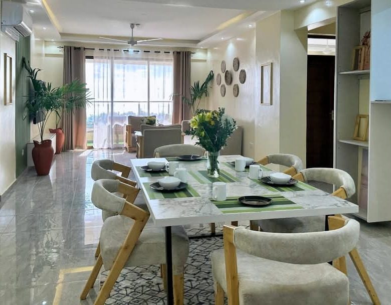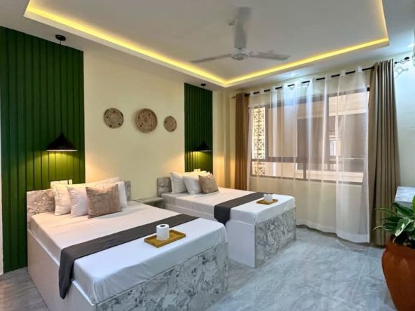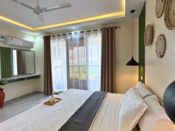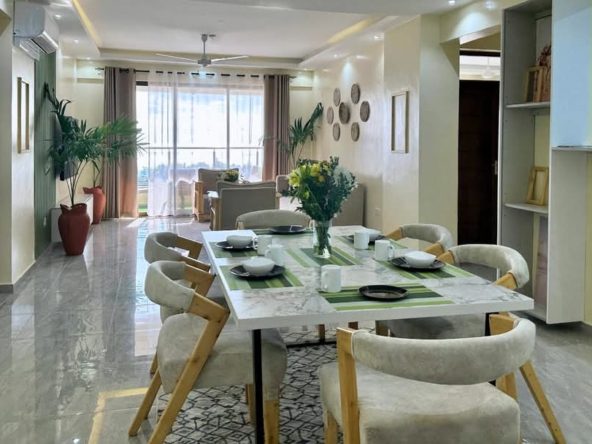 This fully furnished 3-bedroom apartment plus SQ in Nyali, located on 3rd Avenue, offers stunning sea views and a spacious interior. The modern open-plan layout is bright and airy, with large windows that allow plenty of natural light to flow through the space. Each of the three bedrooms is generously sized and comfortable, with air-conditioning throughout for a pleasant atmosphere.