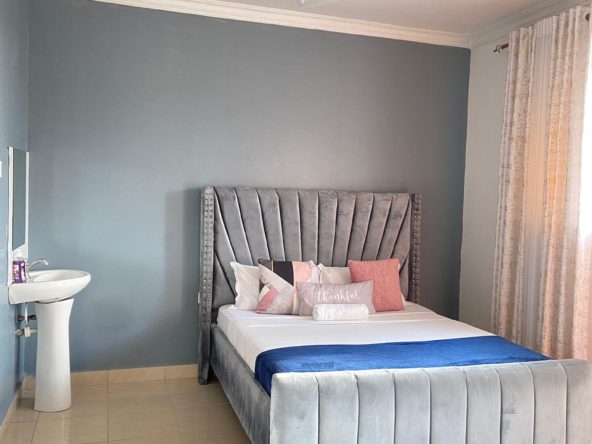 This fully furnished one-bedroom unit in Bamburi Mwembeni offers comfort and security in a peaceful setting.