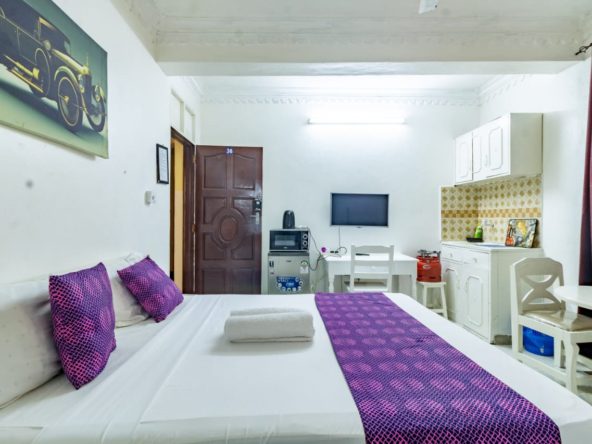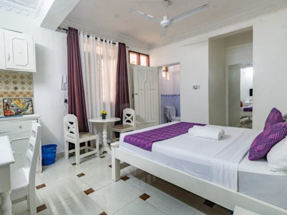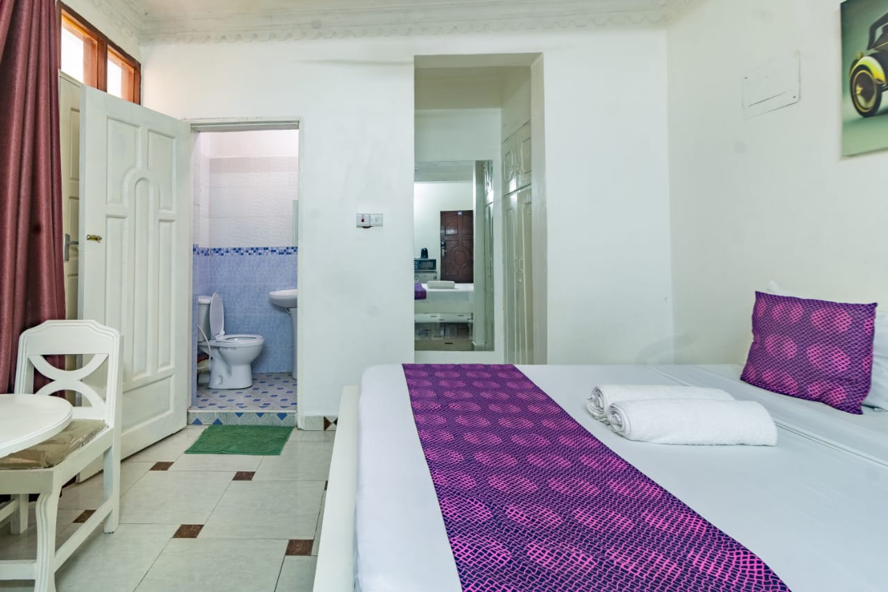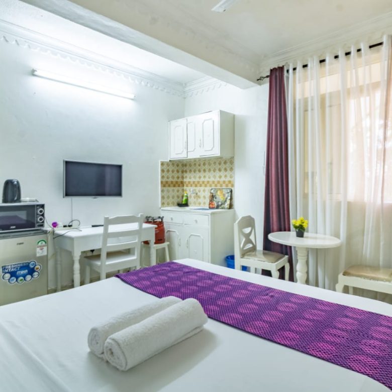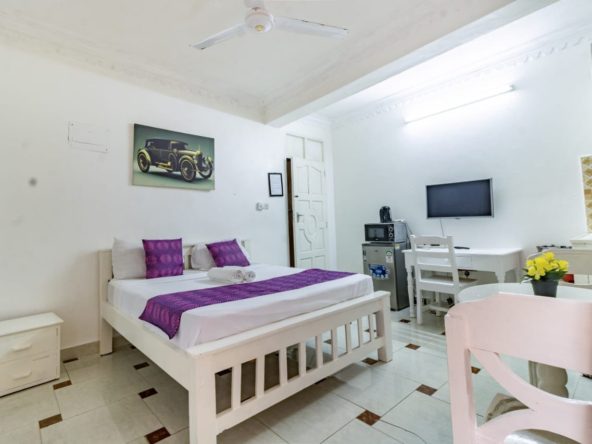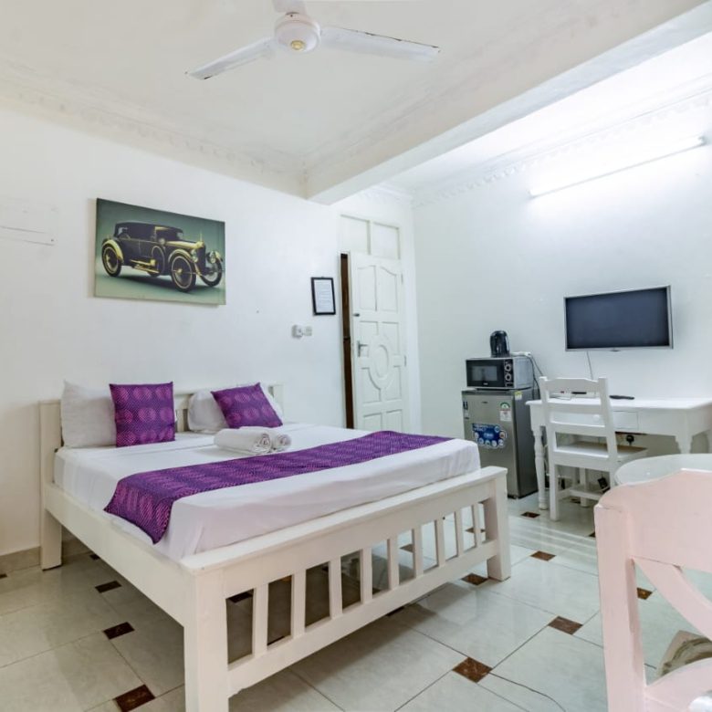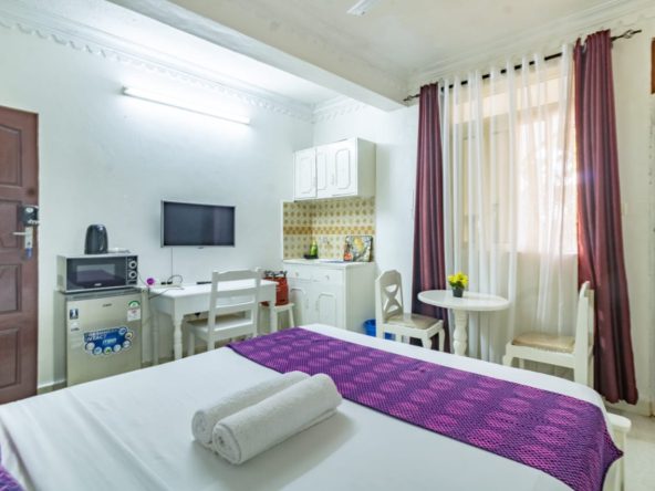 This fully furnished studio in Nyali is only a 3-minute drive from Maasai Beach, providing a comfortable and modern living space. It includes a cozy bed, a seating area with a flat-screen TV, and a kitchenette equipped with a refrigerator, microwave, and essential kitchenware. The studio also has a private bathroom with toiletries and is decorated with a contemporary style. With convenient amenities like free Wi-Fi and parking, it’s perfect for both short and long stays. (36)