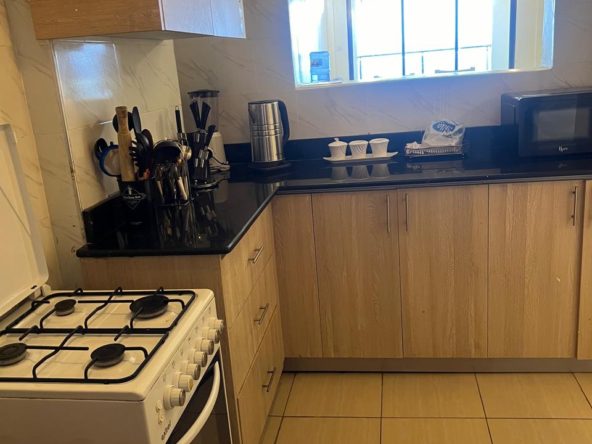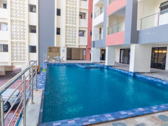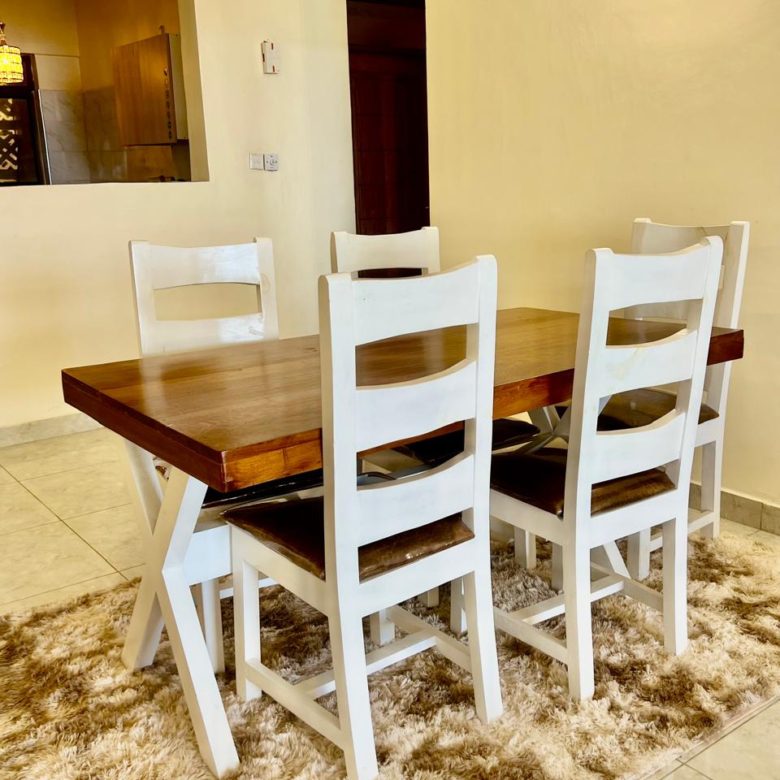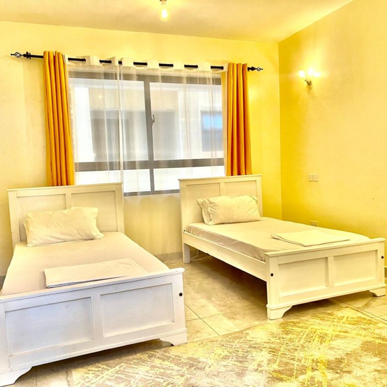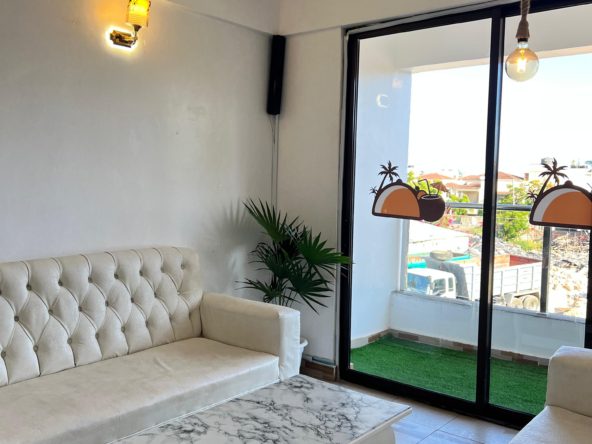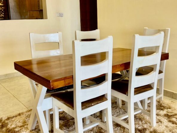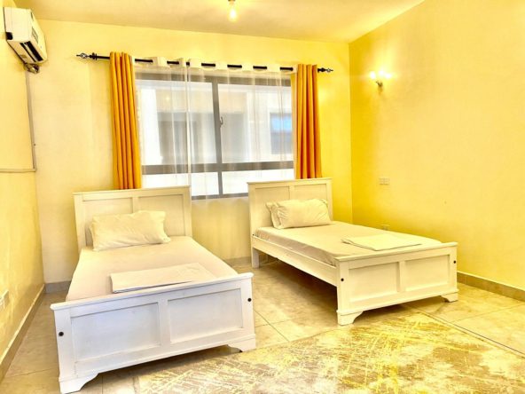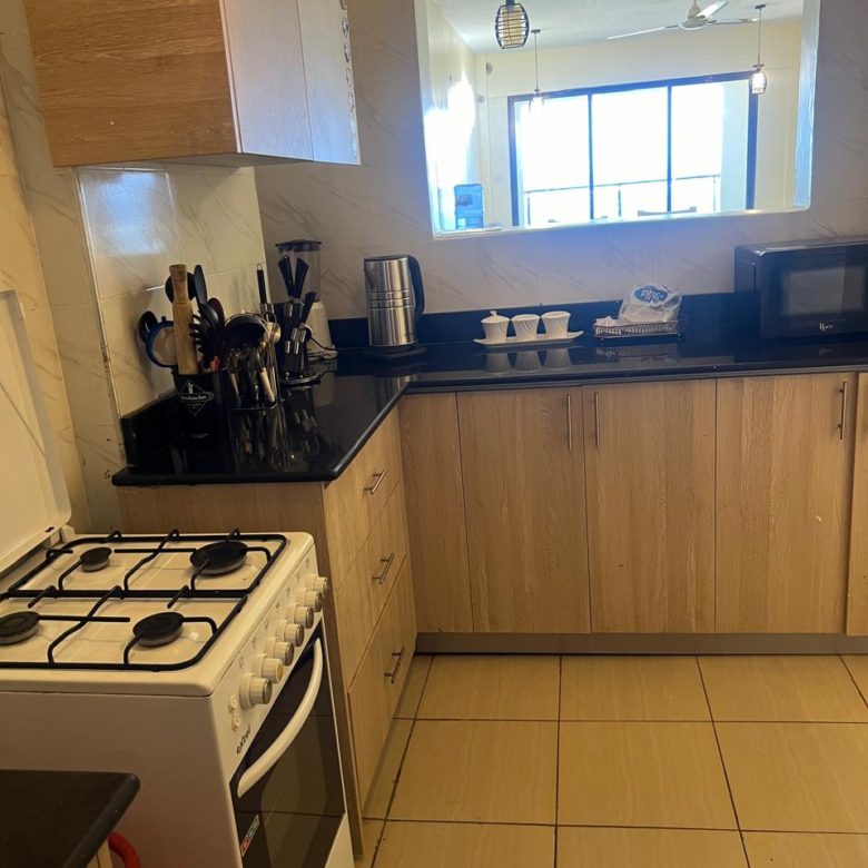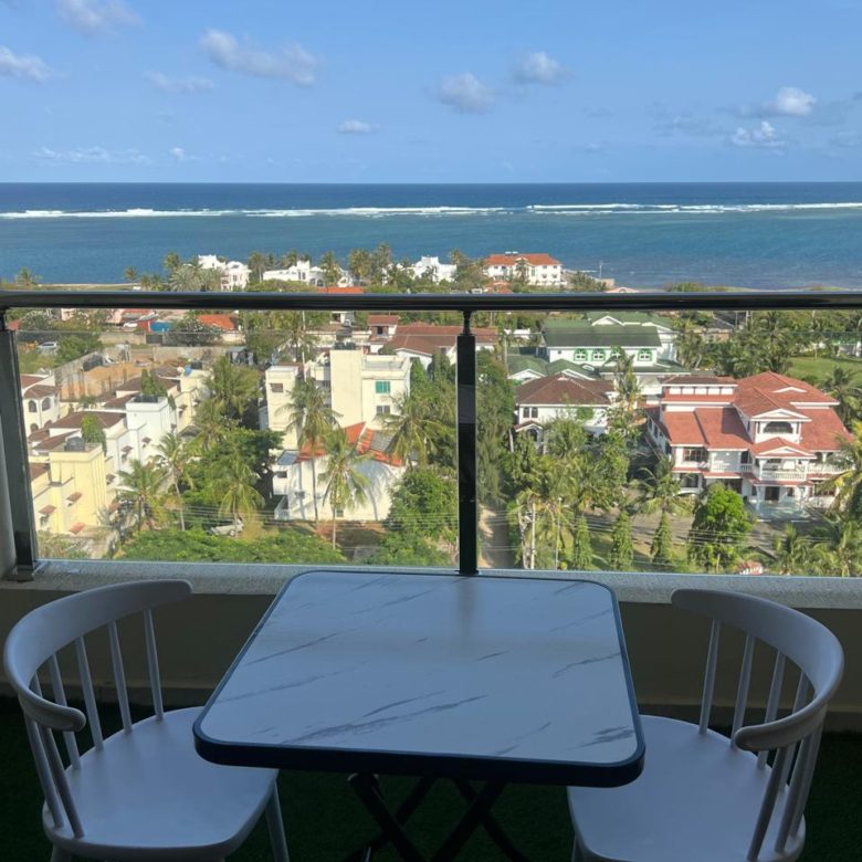 This fully furnished 2-bedroom apartment in Nyali, located on 3rd Avenue, boasts a breathtaking sea view.