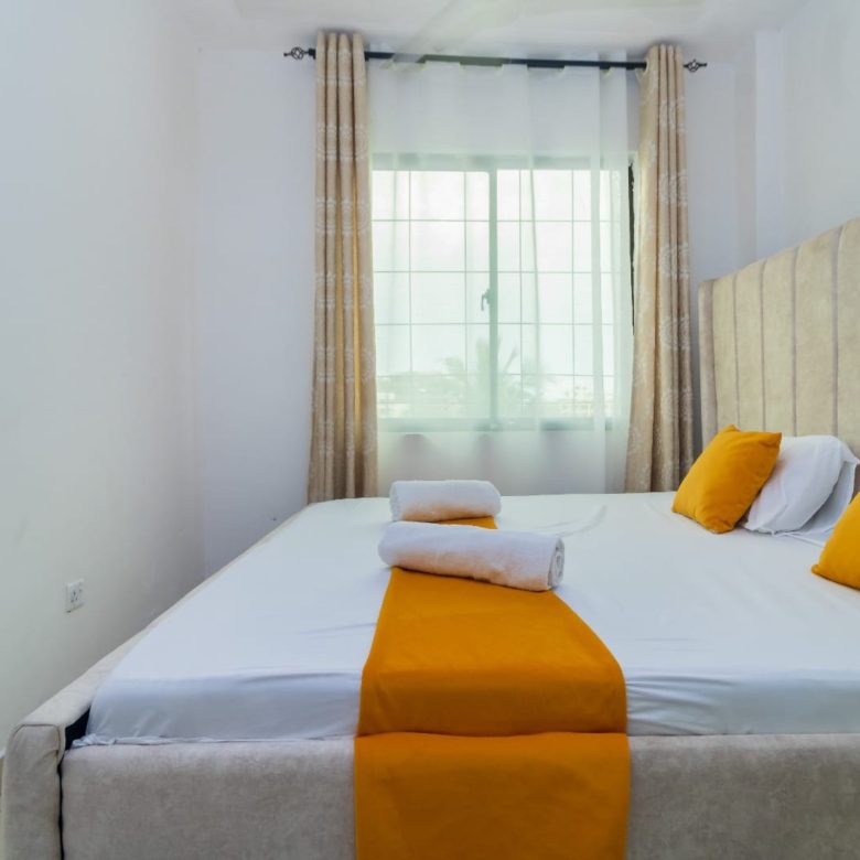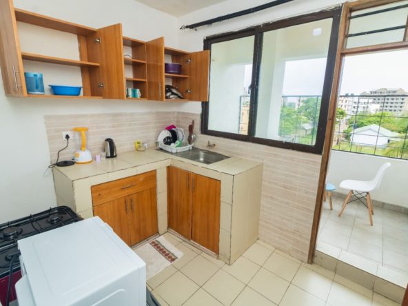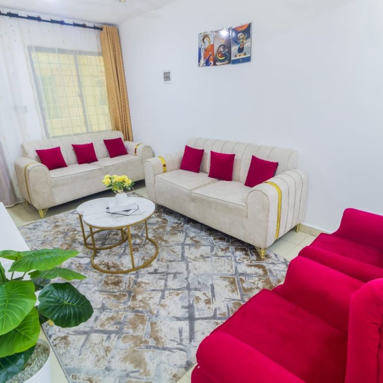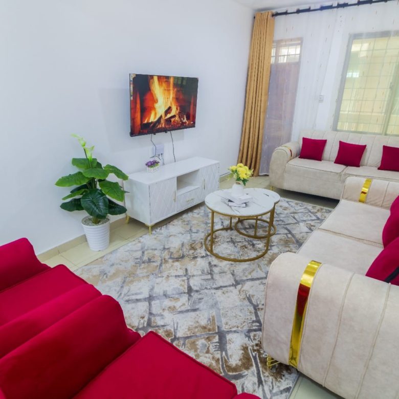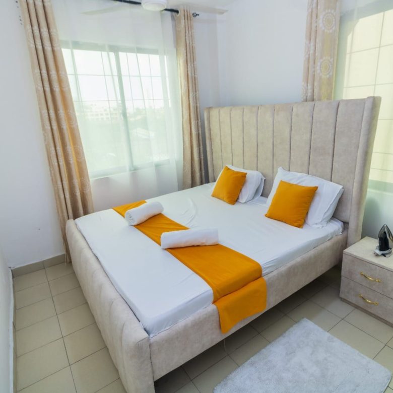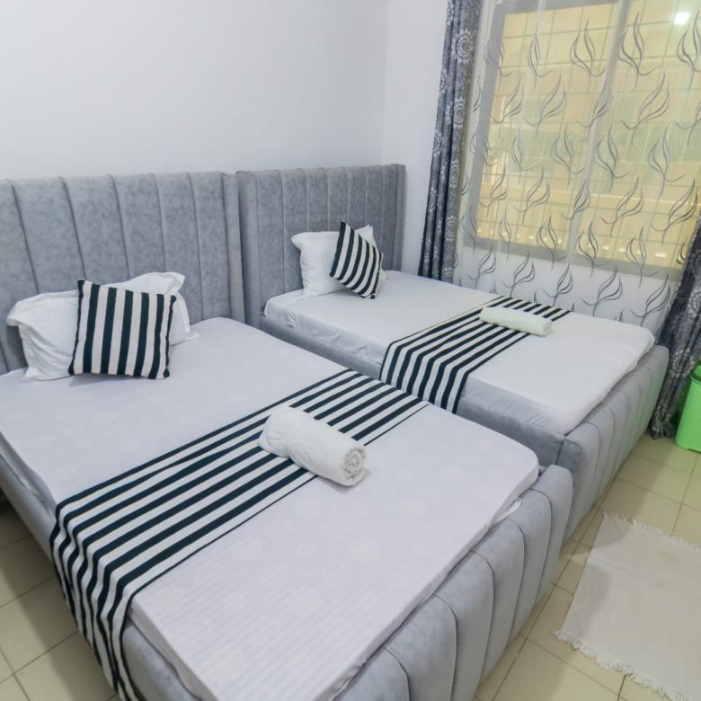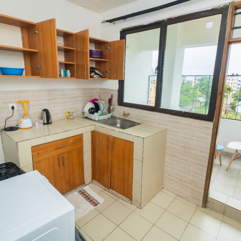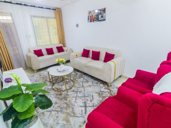 This two-bedroom unit in Bamburi Mwembeni offers a spacious and comfortable living space. The open-plan living area is bright and airy, featuring modern furniture and a cozy atmosphere.