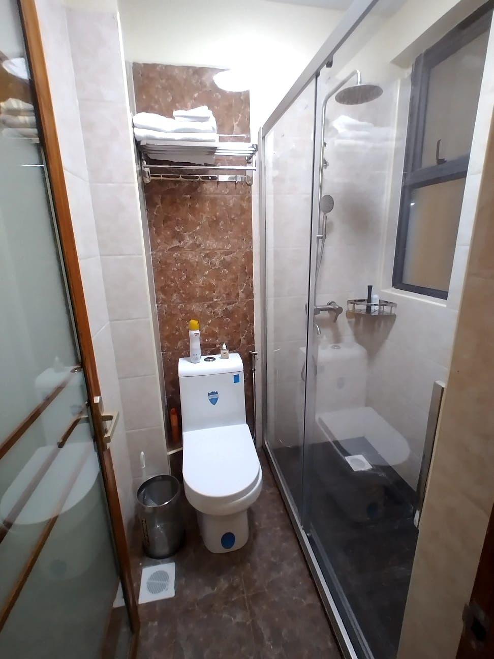 The bedroom is a peaceful retreat, offering a comfortable bed with premium linens and ample wardrobe space for all your clothing. The room is tastefully decorated, with soft lighting and a serene atmosphere that promotes relaxation and rest.