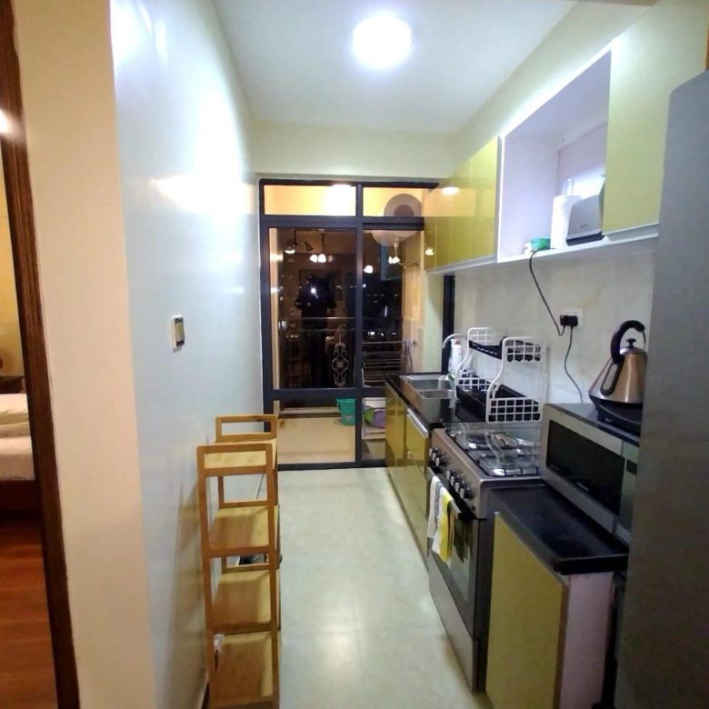 The kitchen is designed with convenience in mind, featuring high-quality appliances such as a stove, oven, refrigerator, and microwave. There’s plenty of counter space for meal preparation, as well as storage for kitchen essentials, making it easy to cook and entertain at home.