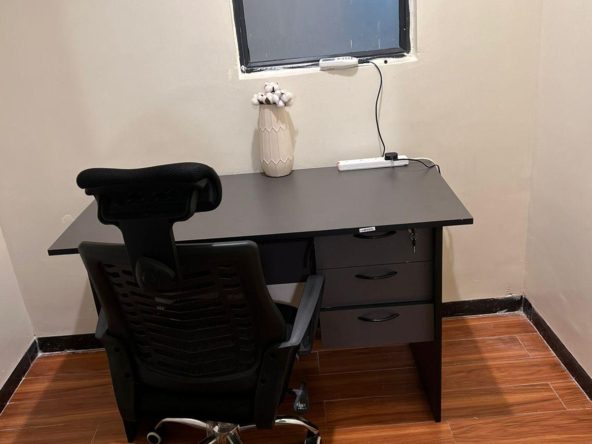 This charming one-bedroom unit, located on Marcus Garvey Road in Kilimani, offers a perfect blend of comfort and functionality, ideal for those looking for a well-equipped space with a dedicated office area.