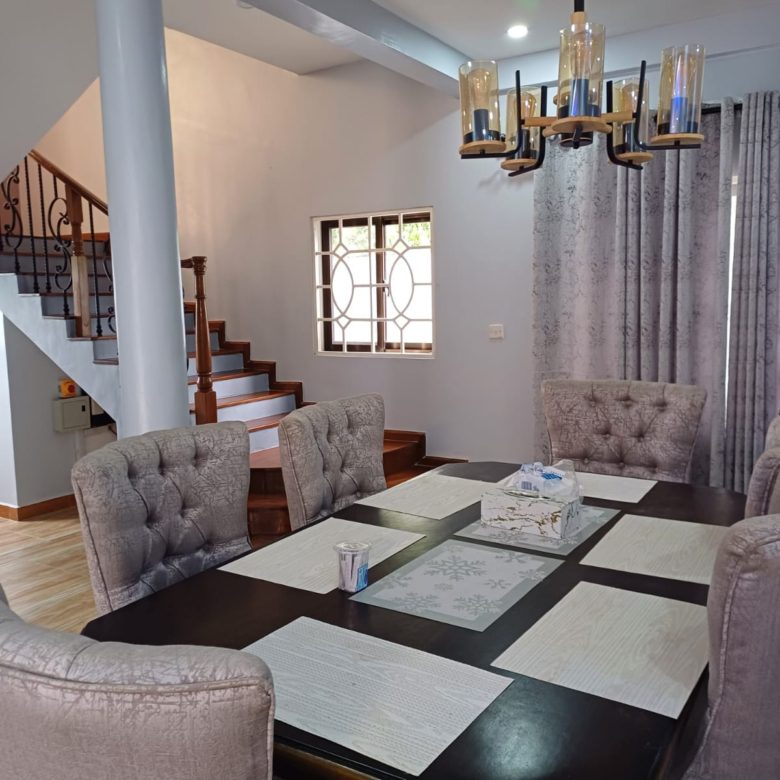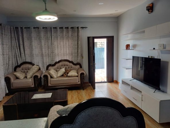 This fully furnished three-bedroom house in Diani offers a perfect blend of comfort, style, and privacy with its own compound. The open-plan living area is spacious and beautifully furnished, featuring modern décor, a comfortable seating area, and large windows that allow natural light to fill the room. It’s an ideal space for relaxation or entertaining guests.