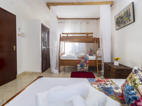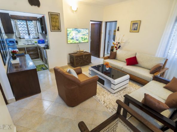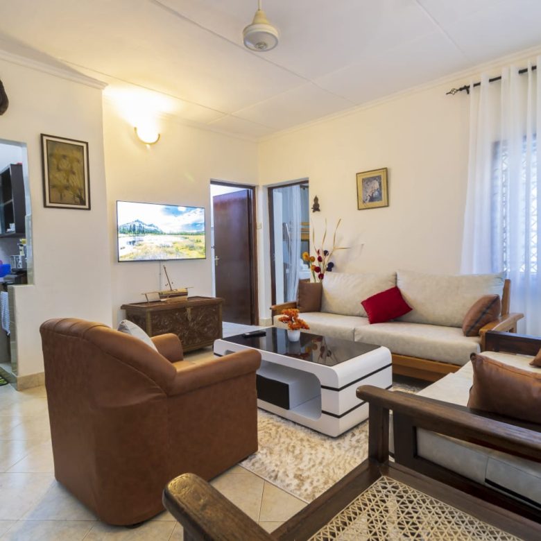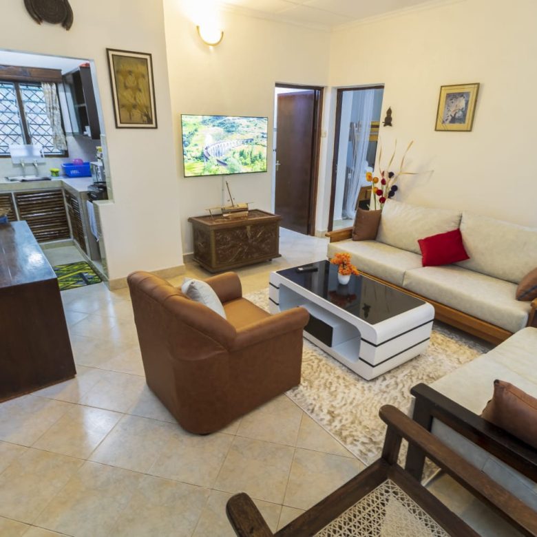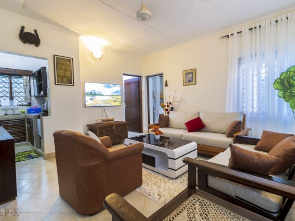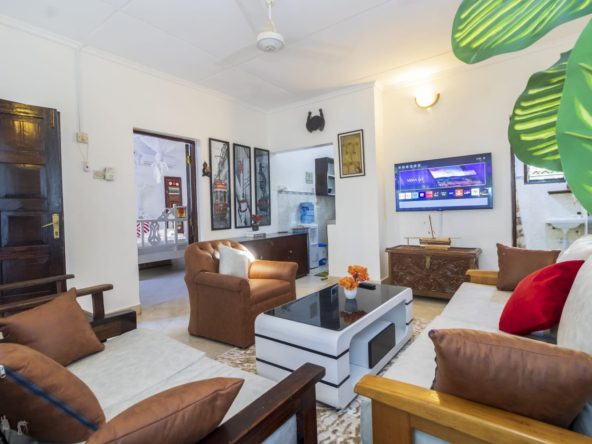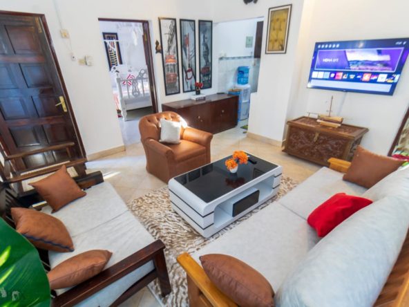 A charming 2-bedroom unit located near the beach in Diani, offering a perfect blend of comfort and coastal living. The open-plan living and dining area is spacious and airy, with large windows that let in plenty of natural light.