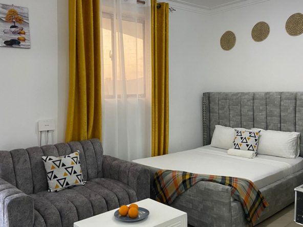This fully furnished studio unit in Bamburi offers a cozy and modern living space, ideal for both short and long stays.