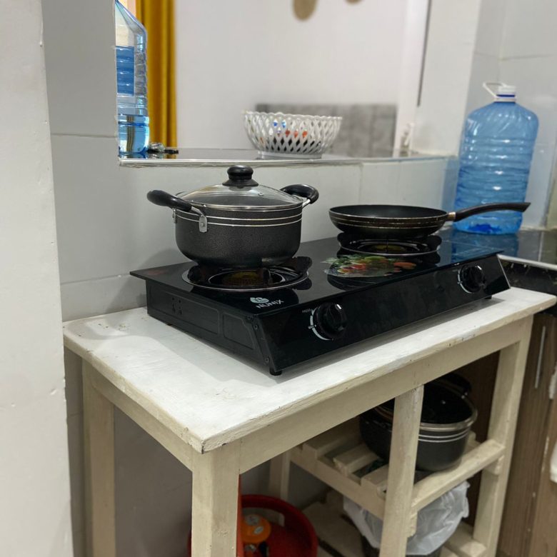The unit also includes a private bathroom with toiletries, offering convenience and privacy. The contemporary decor creates a welcoming atmosphere, while amenities like free Wi-Fi and parking add to the comfort and convenience. This studio is perfect for anyone looking for a stylish and functional space in Bamburi.