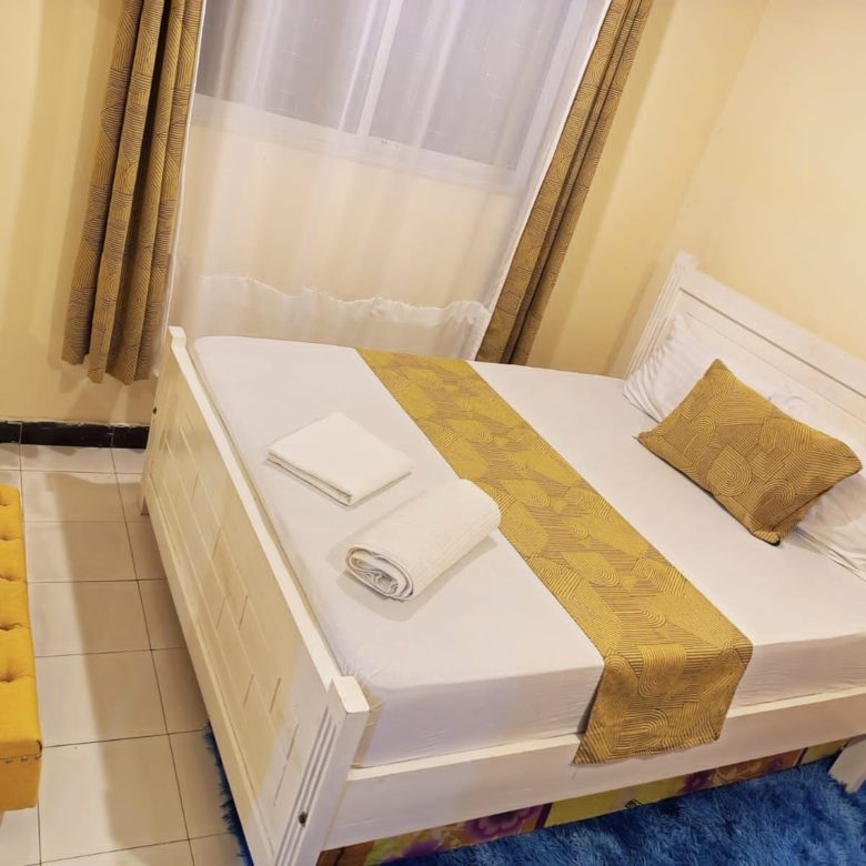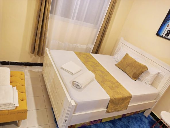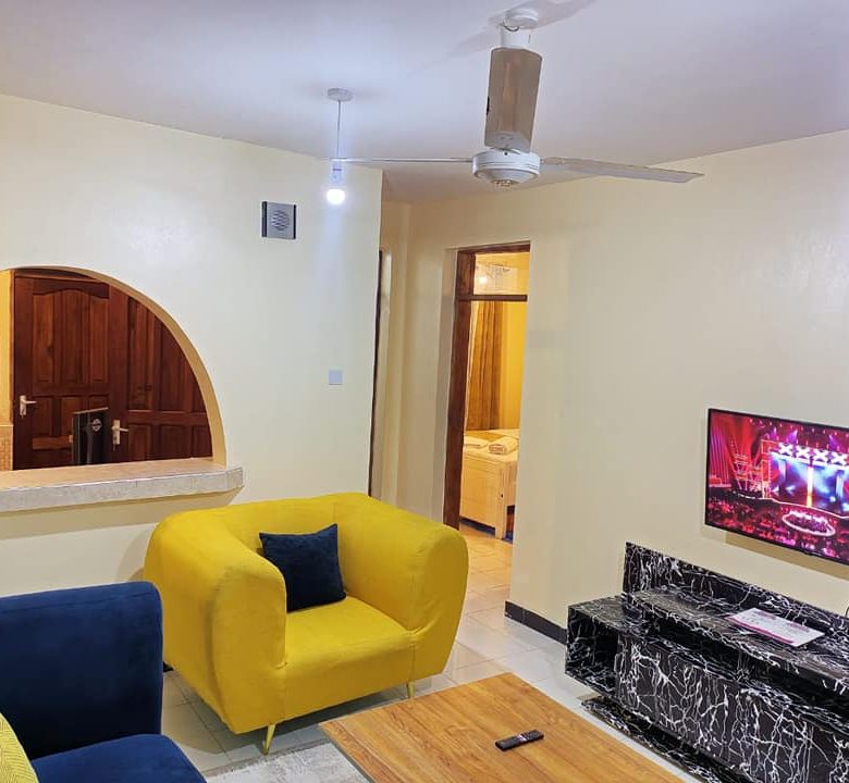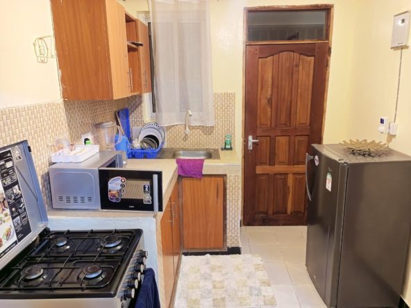 This cozy two-bedroom unit in Mtwapa offers a comfortable and practical living space. The open-plan living area is spacious, with modern furnishings and large windows that let in plenty of natural light.
