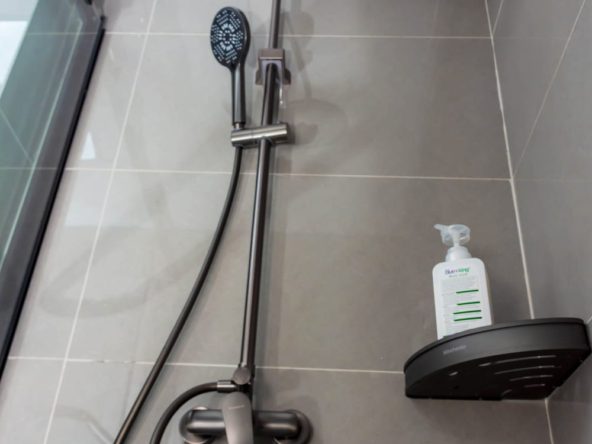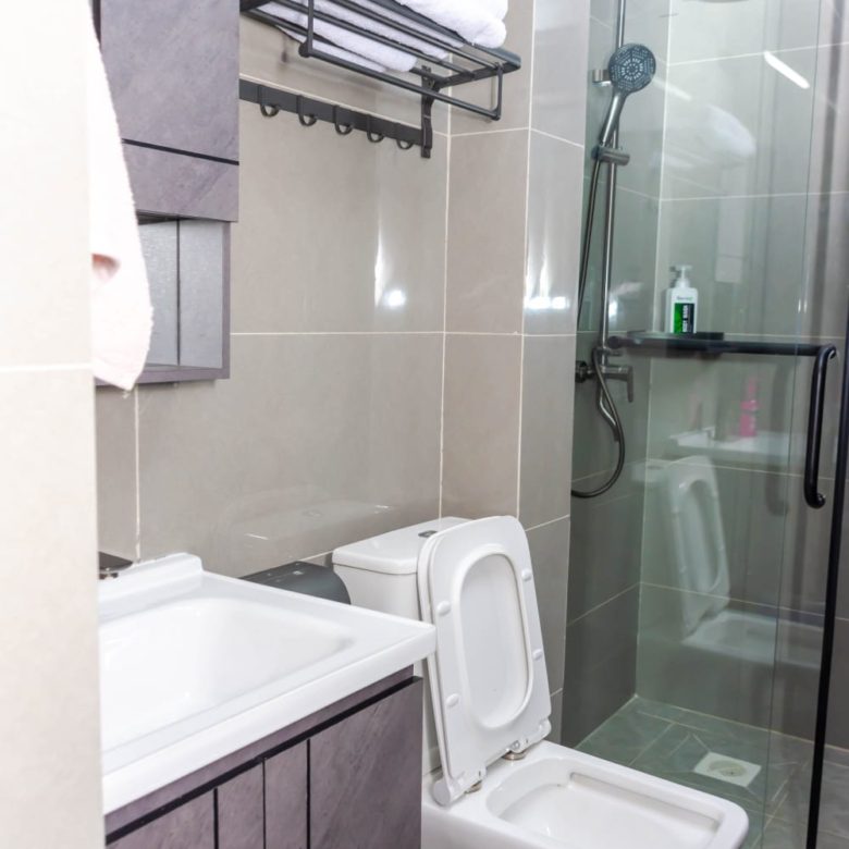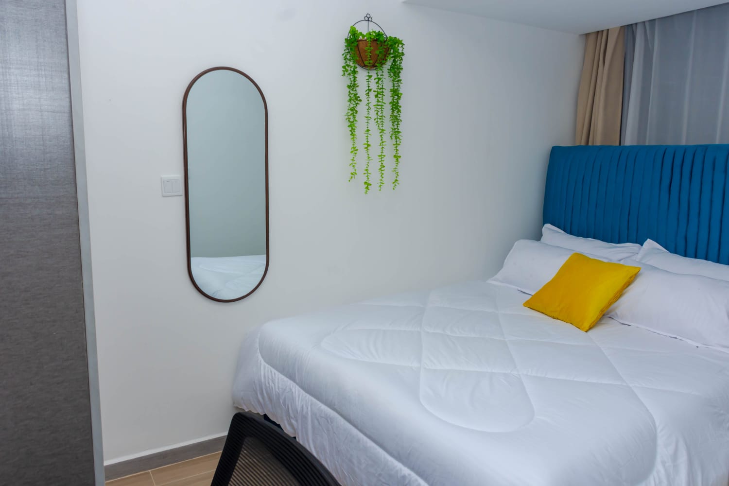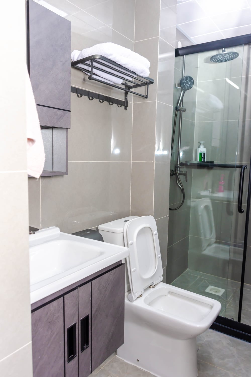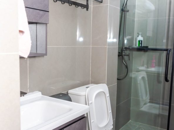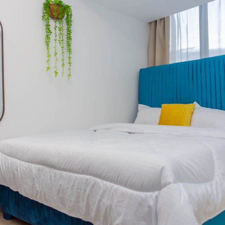 The bedroom is a peaceful sanctuary, featuring a comfortable bed with quality linens and stylish furnishings. The ample wardrobe space ensures all your clothing is neatly organized, while the room’s soft lighting creates a calming environment perfect for unwinding after a long day.
